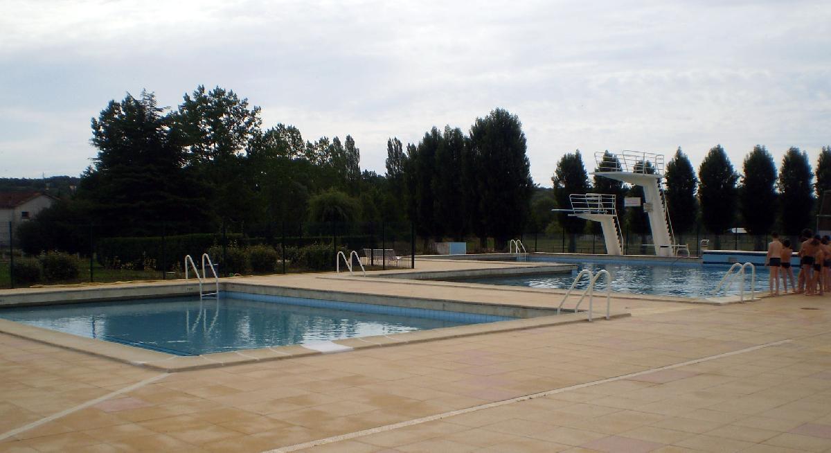 Piscine estivale avec 2 bassins et 3 plongeoirs 1 mètre, 3 mètres et 5 mètres dans une zone délimitée pour la sécurité.